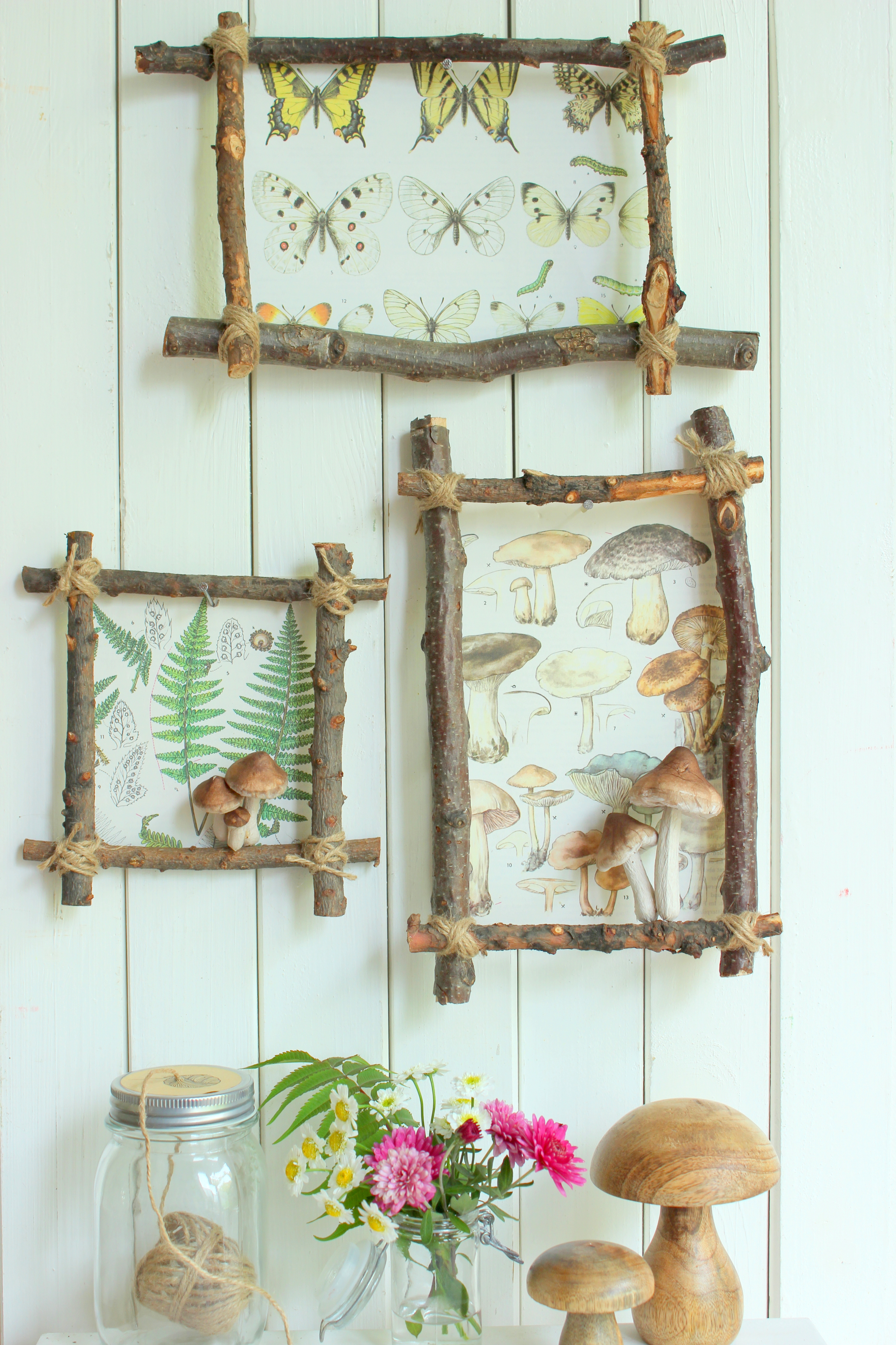 Jetzt, wo die Blätter sich bunt färben, lockt es mich öfters in den Wald. Ohne Korb und Pflanzenschere betrete ich Ihn aber erst gar nicht. Gerade im Herbst findet man die tollsten und meisten Geschenke der Natur wie Nüsse, Eicheln, Kastanien, Tannenzapfen, Pilze, bunte Blätter und hübsche Zweige. Es macht dann besonders viel Spaß, zu Hause mit seinen Fundstücken zu dekorieren und hübsche Sachen damit zu basteln. Ich zeige Euch heute, was Ihr mit ein paar Zweigen basteln könnt. Das Beste daran ist, mit wenigen Mitteln kann man so schnell eine herbstliche Stimmung ins eigene Heim bringen, die auch noch so gut wie nichts kostet.