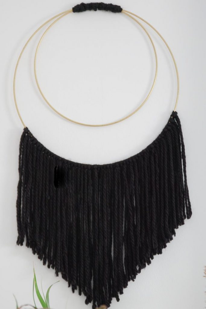 Ich habe mich mit Schwarz für eine Farbe entschieden, die bei uns gut ins Wohnzimmer oder auch in die Küche passt, aber gerne könnt ihr diese Boho Chic Wanddeko auch knallig gestalten.