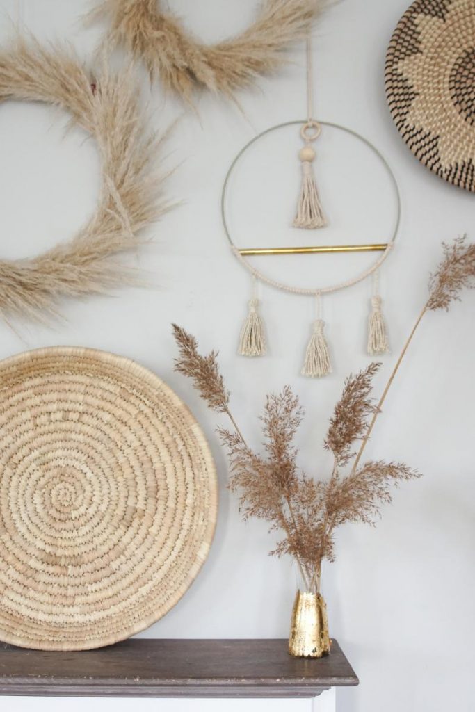 Die DIY Wanddeko für euer Wohnzimmer passt auch super zu den Pampasgraskränzen sowie zu dem Wasserhyazinthen-Teller.