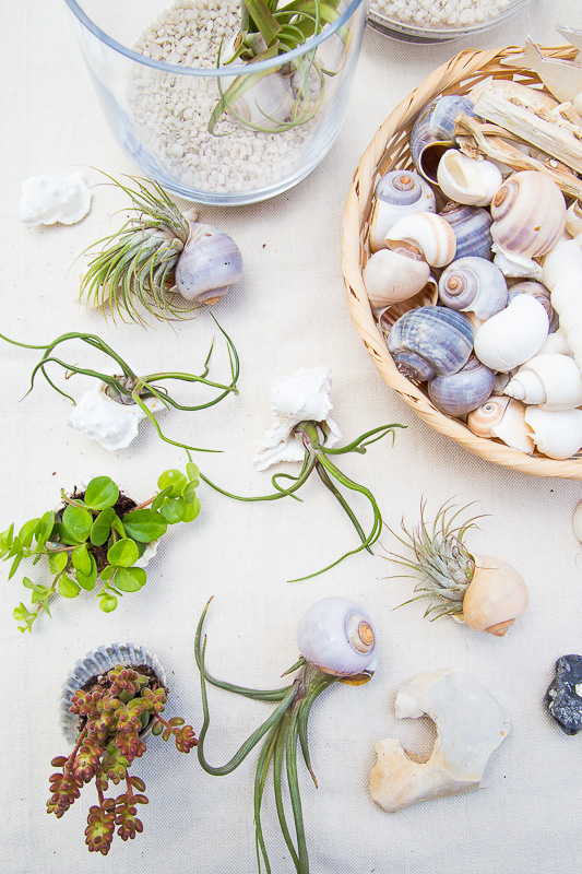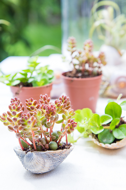 Habt ihr keine Tillandsie da oder bekommen, machen sich auch Mini-Sukkulenten besonders hübsch in größeren Muscheln oder Schneckenhäusern. Einfach abteilen und zusammen mit der Erde aus dem Topf in den Strandfund pflanzen.