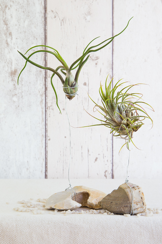 Die Air Plants lieben Luftfeuchtigkeit und müssen daher nicht gegossen werden. Das Badezimmer oder die Küche wären ideale Orte für sie.