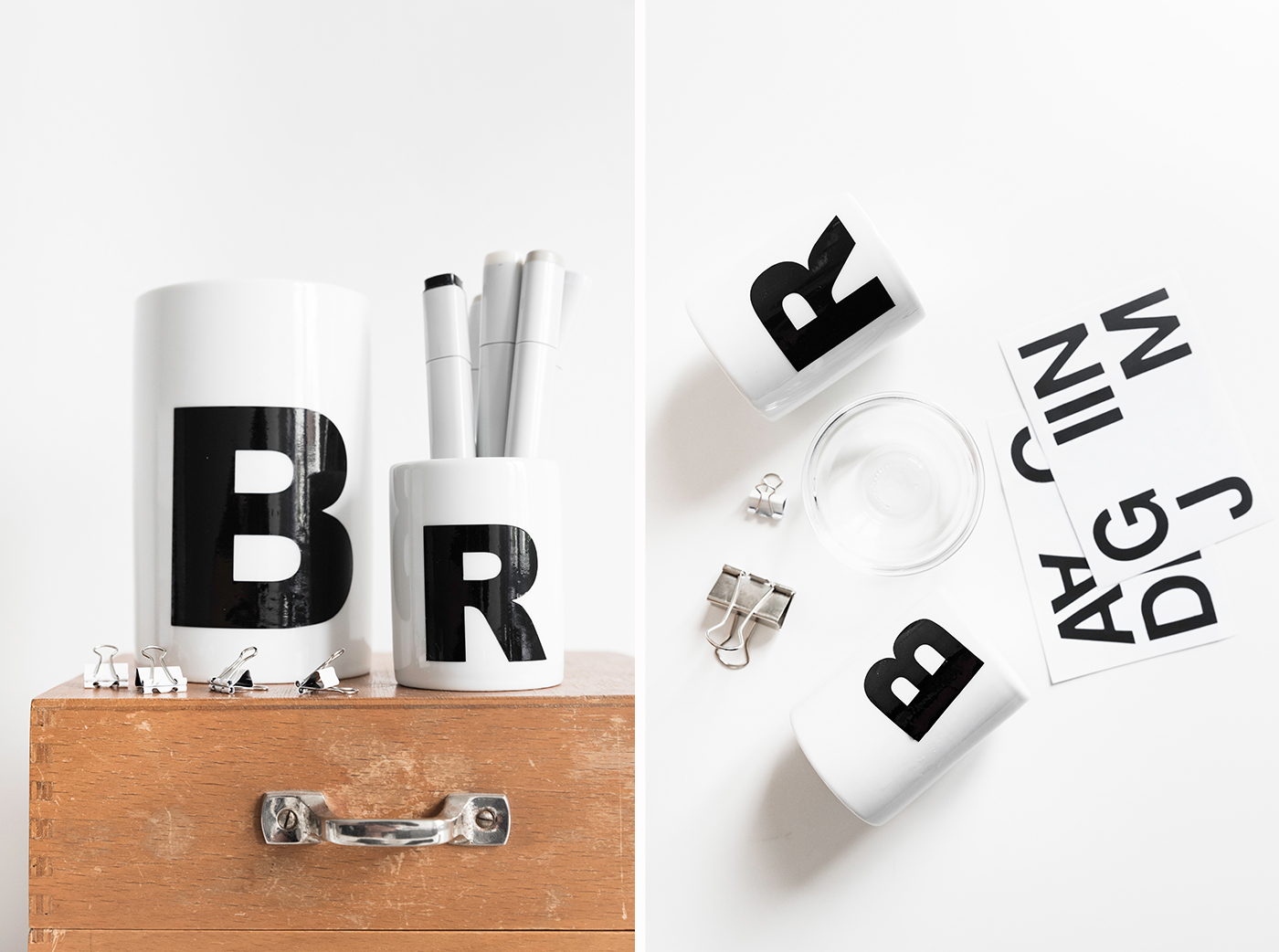 Mit Porzellan kann man schreiben, ein Dekotrend hält Einzug. Buchstaben sind schon länger beliebte Dekorationsaccessoires. Ob als Schriftzüge auf Plakaten, als Einzelbuchstaben zum Aufstellen oder als „Design-Letters“ auf Tassen. Mit Buchstaben lässt sich wunderbar dekorieren. Praktisch finde ich Dekogegenstände mit Funktion, so habe ich kurzerhand meine Tassen und Vorratsbehälter aus Porzellan mit Buchstaben beklebt und damit dekoriert. So stehen beklebte Vorratsbehälter von DEPOT als Stiftköcher auf dem Schreibtisch. Tassen mit Buchstaben werden als Vase benutzt. Ich zeige euch heute einen kleinen Kniff, wir auch ihr euer Porzellan mit Buchstaben bekleben könnt.