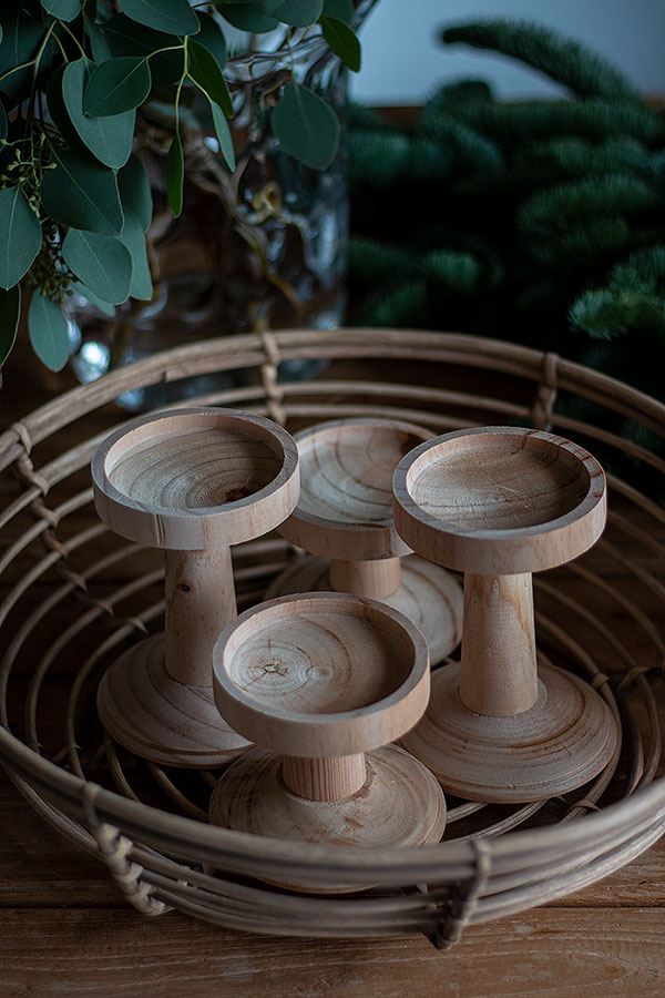 - 4 Kerzenhalter für Blockkerzen aus Holz in 2 unterschiedlichen Höhen