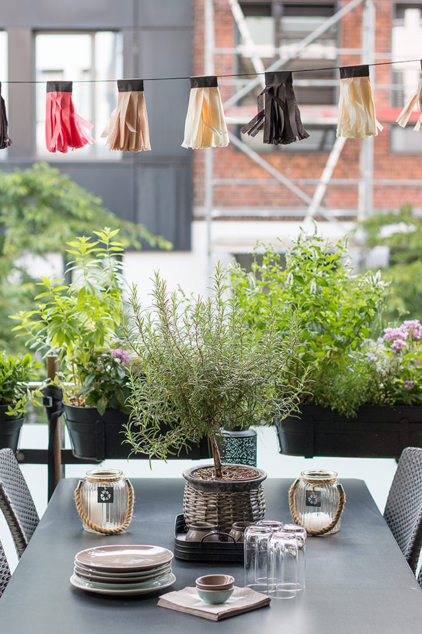 Ich bin mit dem Ergebnis mehr als zufrieden und erfreue mich jeden Tag an der Girlande. Durch den leichten Wind bewegen sich die einzelnen Streifen und bauschen die Pom Poms natürlich schön auf. Die Girlande ist auch eine super Geschenkidee für den nächsten Geburtstag oder eine Hochzeitsfeier im Freien. Gestaltet sie doch in den Lieblingsfarben des Beschenkten. Ich bin mir sicher, dass sich dieser riesig darüber freuen wird.