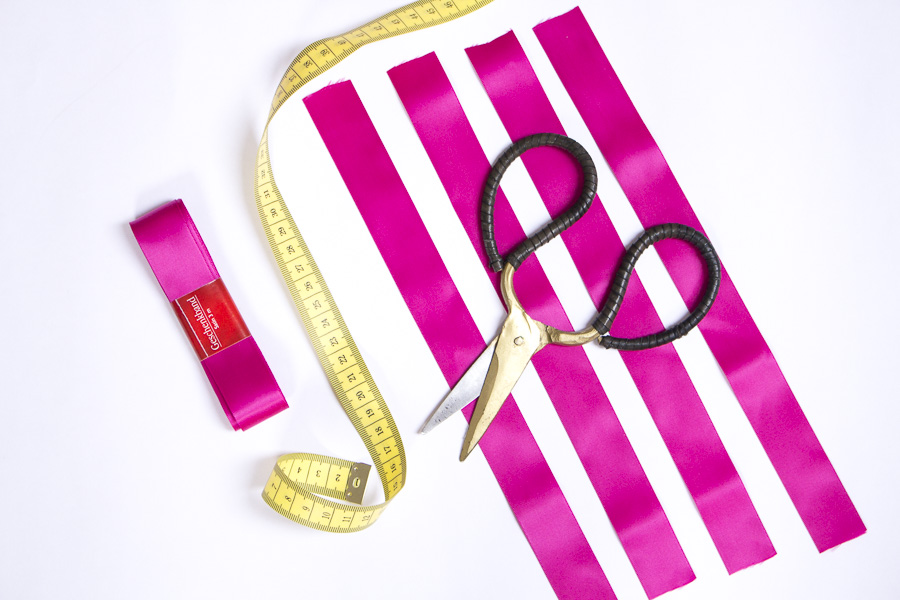 Step 2: Schneidet Euch von dem Schleifenband Eurer Wahl 8 Stücke á ca 30cm zu recht.
