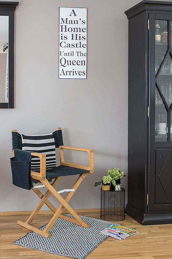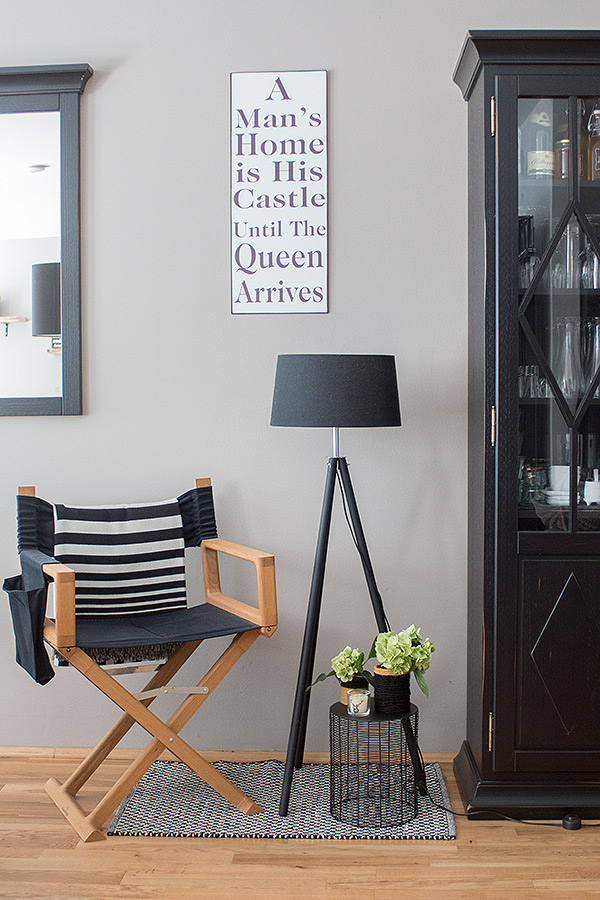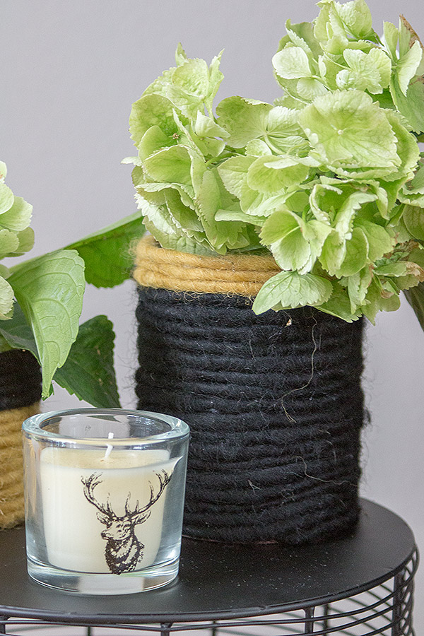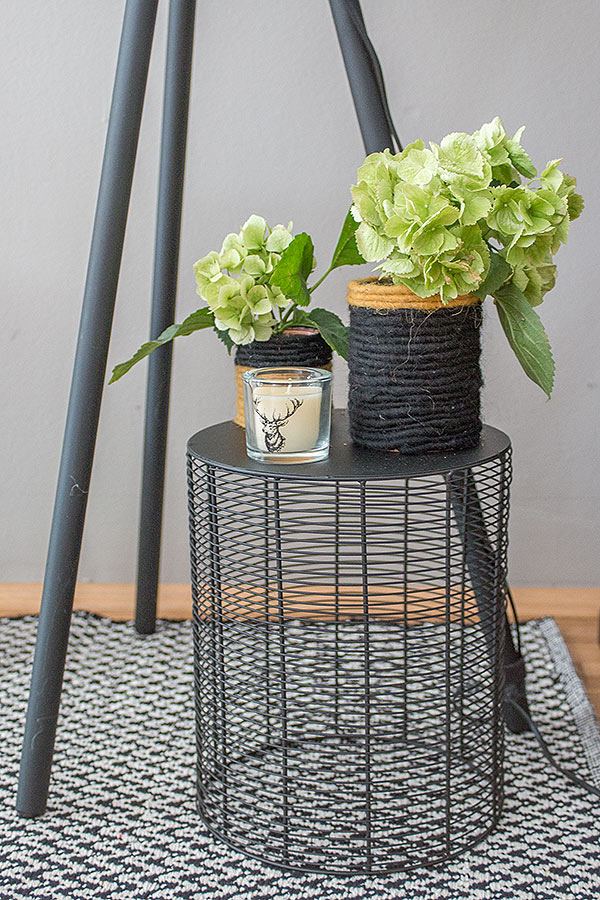 Verliebt habe ich mich derzeit in diesen kleinen schwarzen Beistelltisch sowie den Baumwollteppich von DEPOT. Diese beiden Deko-Artikel passen perfekt in meine Leseecke im Wohnzimmer. Auf dem Beistelltisch haben auch die beiden DIY Blumenvasen platz genommen. Bevor die Hortensie auf unserem Balkon verblüht, habe ich schnell noch 2 Blüten abgeschnitten und sie in die Blumenvasen drapiert.