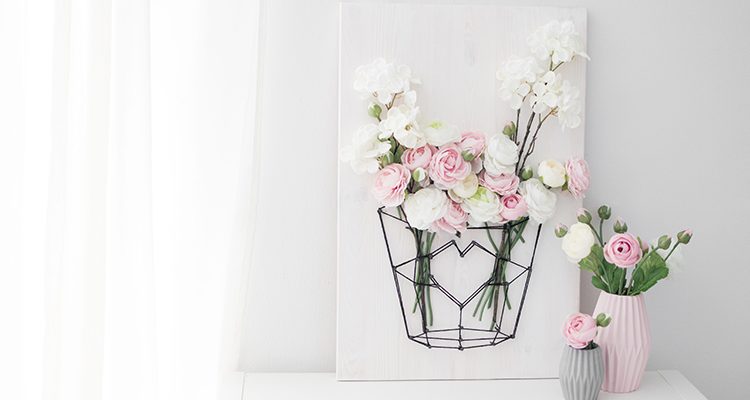 Der Frühling kommt mit großen Schritten. Die Tage werden länger und heller. Die Sonne zeigt sich immer öfter. Der Wunsch nach frischen Blumen wird immer größer. Aber jede Woche neue Schnittblumen kaufen? Immer wieder neu drapieren? Das macht Spaß, aber etwas Längerwieriges, das immer schön aussieht, wäre doch die perfekte Dekorationslösung für den Frühling, Sommer, Herbst… Wir haben da eine tolle DIY Idee für euch, eine, die sehr, sehr lange frisch und einladend ausschaut. Ein Fadenbild mit angemutetem Drahtkorb und Kunstblumen!