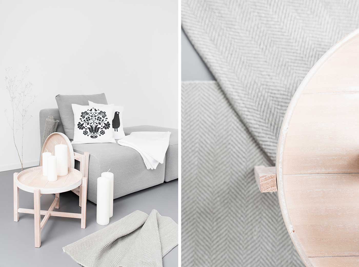 Ich setze auf Kleinmöbel, wie die zusammenklappbaren Beistelltische von DEPOT. Ob ich nun auf dem grob gewebten Baumwollteppich sitze und mich an der Couch anlehne oder auf dem Sofa selbst Platz nehme. Die Beistelltische zitieren die ungezwungene Lebensart und passen toll zum Wohnstil Boho-Chic. Ein Laken mit Bommelbordüre habe ich mir mal selbst genäht, aber auch DEPOT hat grob gestrickte Wolldecken mit Fransen im Sortiment. Stumpenkerzen passen immer, das dachten sich bestimmt auch die Blumenkinder der 60er und 70er Jahre. Die Kissen mit den Folkloremustern habe ich mir selbst bedruckt. Wenn Ihr nicht so einen Aufwand treiben möchtest, hier findest Du Kissen mit bedruckten Mustern im „Boho-Stil“