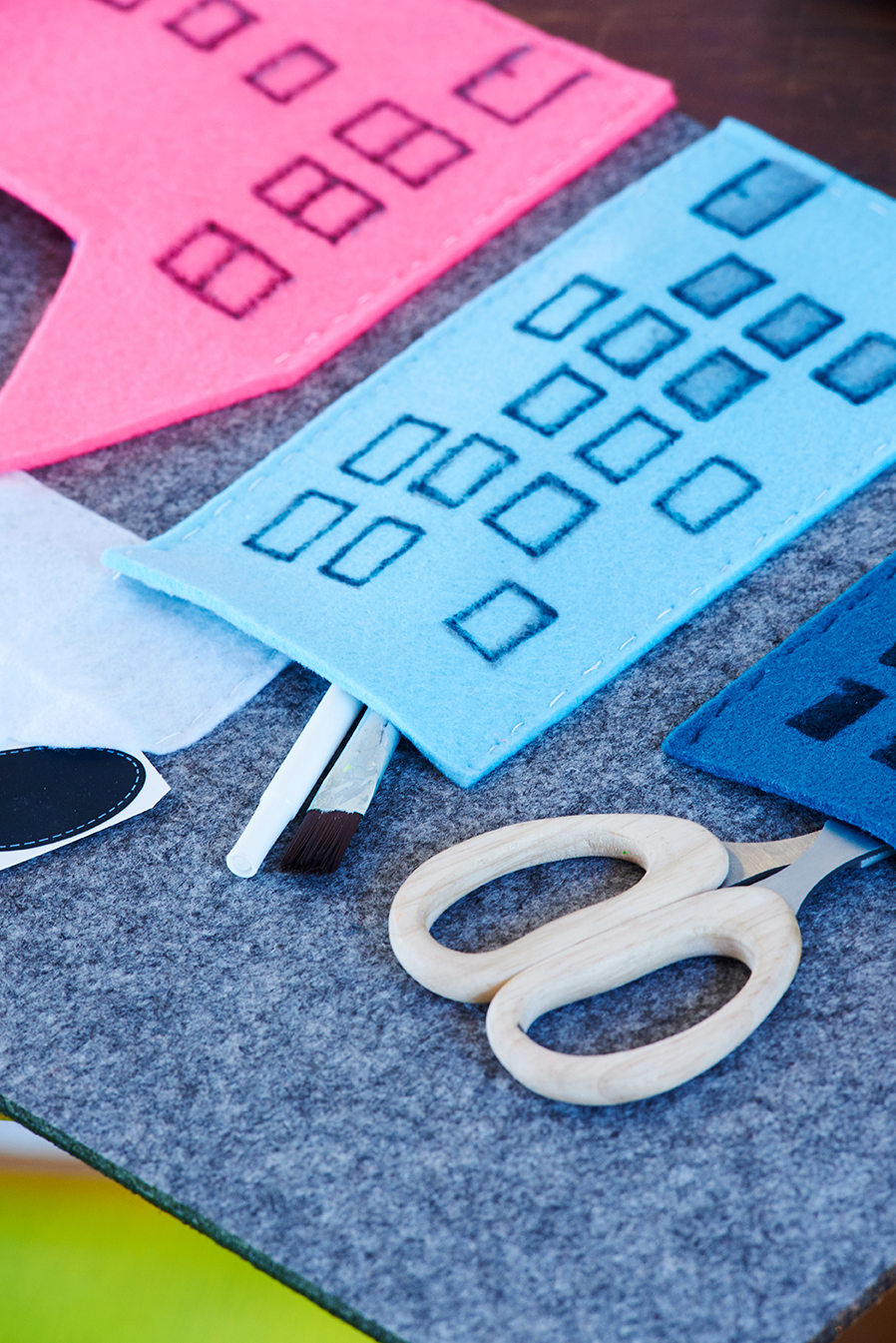 Mein Tipp: Nähen ist dir zu aufwendig? Gar kein Problem. Im Bastelshop findest du Stoffkleber. Mit diesem kannst du die Häuser bombenfest aufkleben!