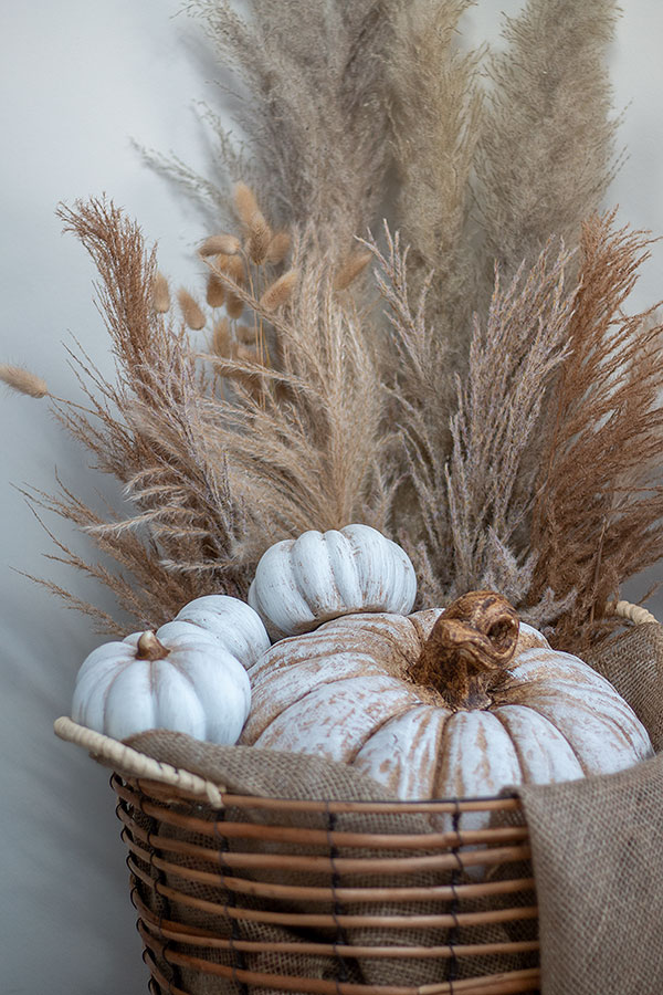 Die neutralen Farben, die warmen Töne und schönen Texturen machen den Herbst zu meiner Lieblingsjahreszeit zum Dekorieren. Schon etwas länger im Trend sind Ziergräser und Trockenblumen. Und ich sage euch, damit lässt sich hervorragend dekorieren! Ihr benötigt nur ein paar Handgriffe für dieses herbstliche DIY. Dieser Herbstkorb, gefüllt mit Ziergräsern- und kürbissen, sieht überall hübsch aus. Ob vor der überdachten Haustür, im Eingangsbereich, im Schlafzimmer, Esszimmer oder im Wohnzimmer. Habt ihr eine überdachte Terrasse? Perfekt! Auch dort lässt sich der Herbstkorb wunderbar arrangieren.