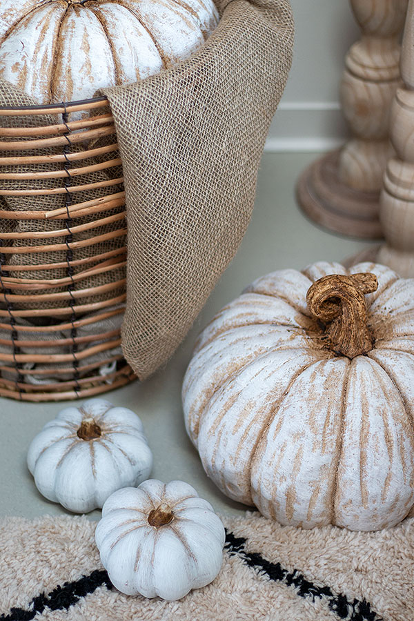 Das Ambiente rund um den Herbstkorb wirkt noch harmonischer, wenn ihr ein paar Zierkürbisse in unterschiedlichen Größen vor und neben den Dekokorb stellt. Natürlich dürfen Kerzen im Herbst nicht fehlen! Ich liebe meine neuen Bodenkerzenhalter aus Holz. Diese gibt es in klein und groß. Toll darauf passen diese Stumpenkerzen in offwhite. Auch ein Dekotablett fügt sich harmonisch in die Herbstdeko ein. Dieses könnte man ebenfalls verwenden, um Zierkürbisse darauf zu dekorieren.
