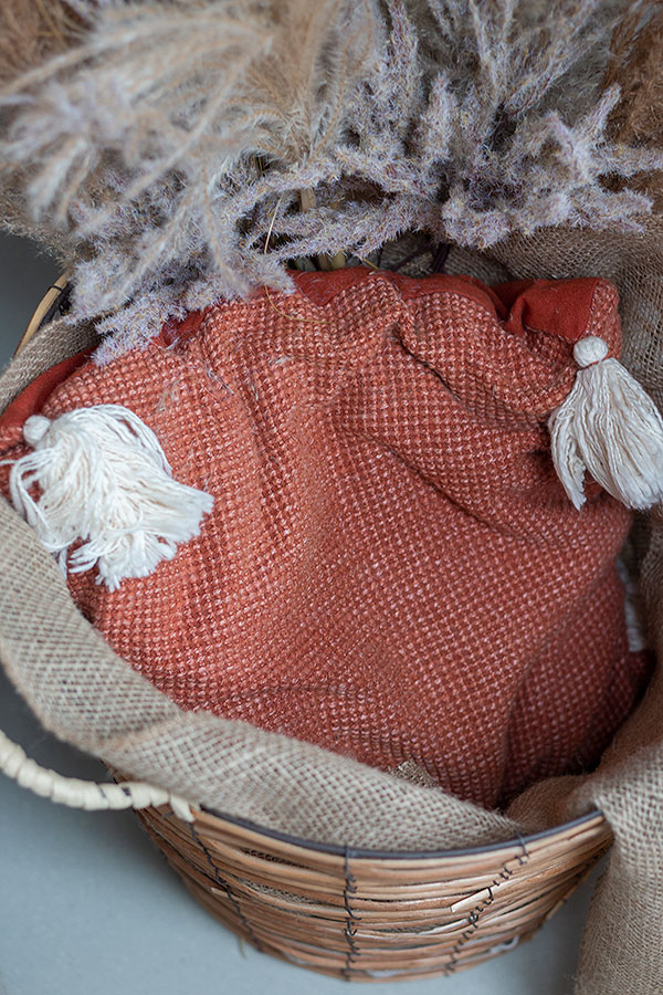 2. Ein beliebiges Kissen in den Dekokorb stopfen, um Höhe zu gewinnen.