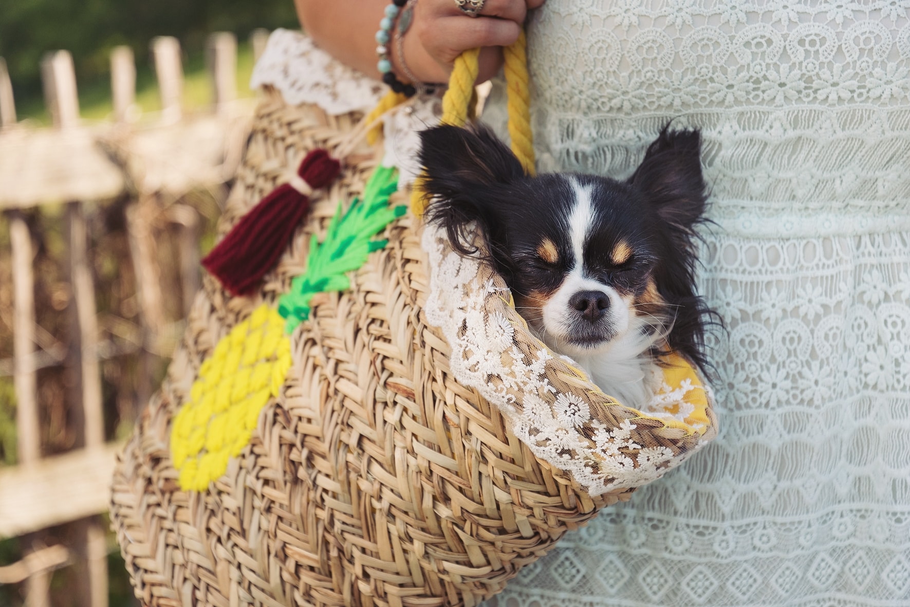Korbtasche mit Spitzenband und Quaste
