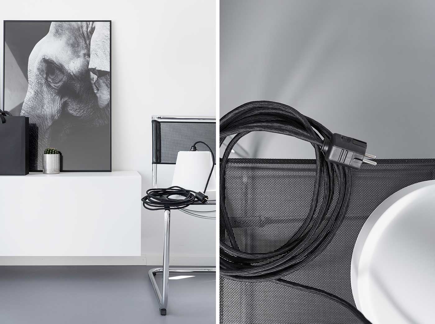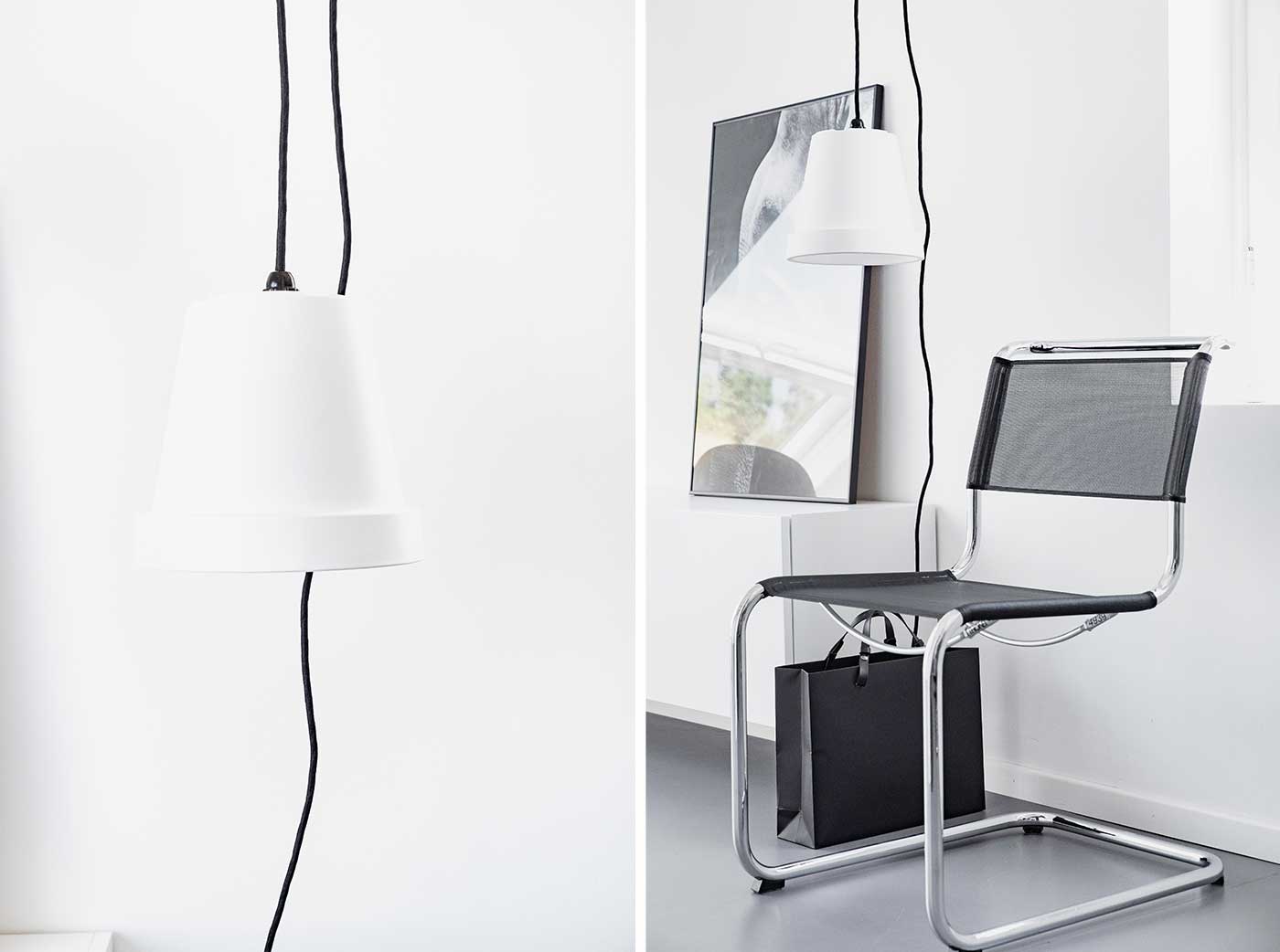 Meine Lampe hängt am Balken in der Nähe einer Steckdose – ich habe bewusst auf einen Schalter verzichtet. Die Lampe im Ready-Made-Design kann auch als Nachttischlampe verwendet werden. Mit einem Distanzhalter kann die Leuchte an die Decke geschraubt werden. Der Stecker wird zur Steckdose geführt und eingesteckt.
