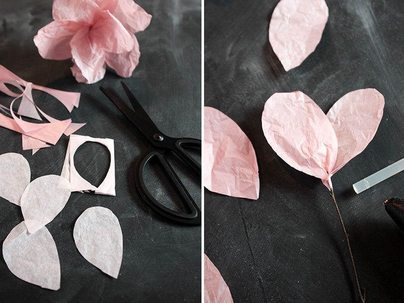 - Die ausgeschnittenen Tropfen bzw. Blütenblätter in der Hand etwas zerknüllen, das sorgt später für einen natürlicheren Look.