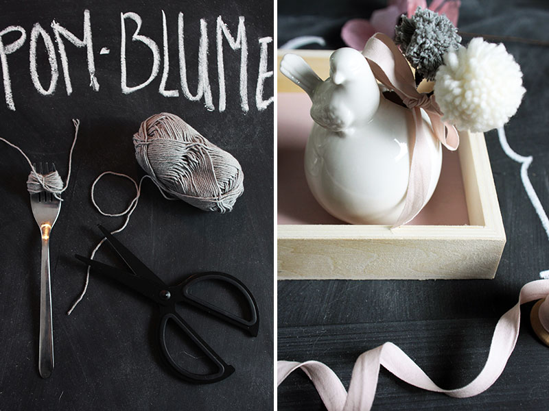 Eine süße Alternative zu den DIY Papierblumen sind kleine Blumen aus Woll-Pom-Pom´s.
