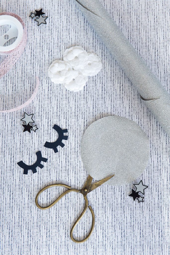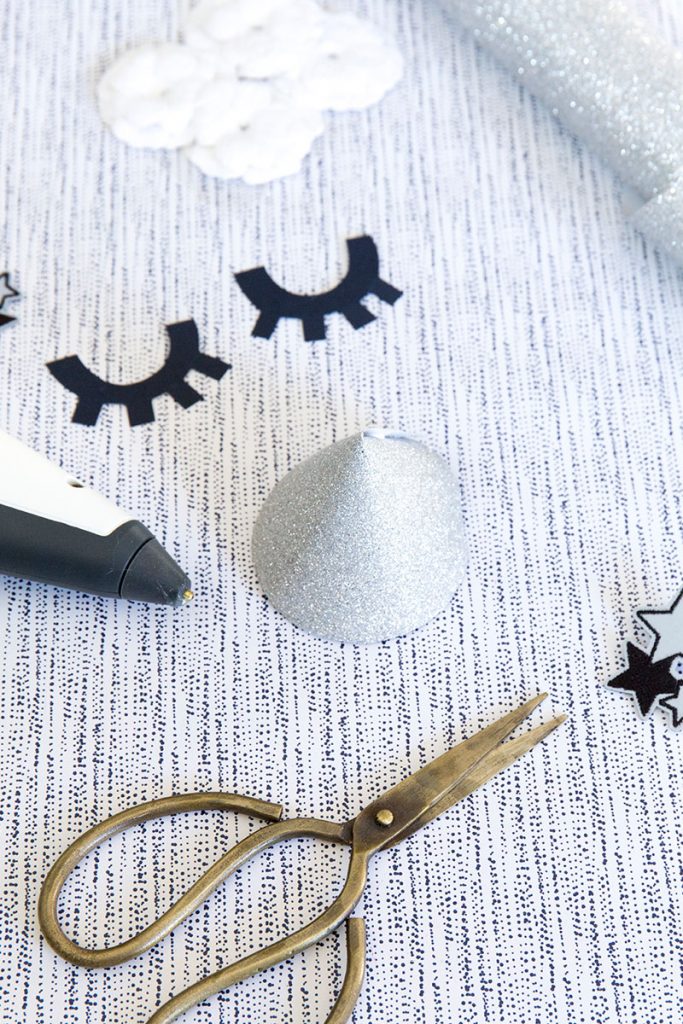 2. Aus dem Glitzerpapier einen Kreis für das Horn ausschneiden.