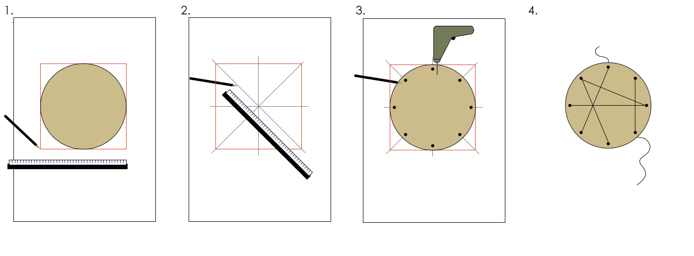 - Nehmt das Tablett vom Papier und zeichenet mit einem Bleistift über die Ecken und über die Mitten des Quadrats diagonale und gerade Linien, so dass ein „Stern“ entsteht.