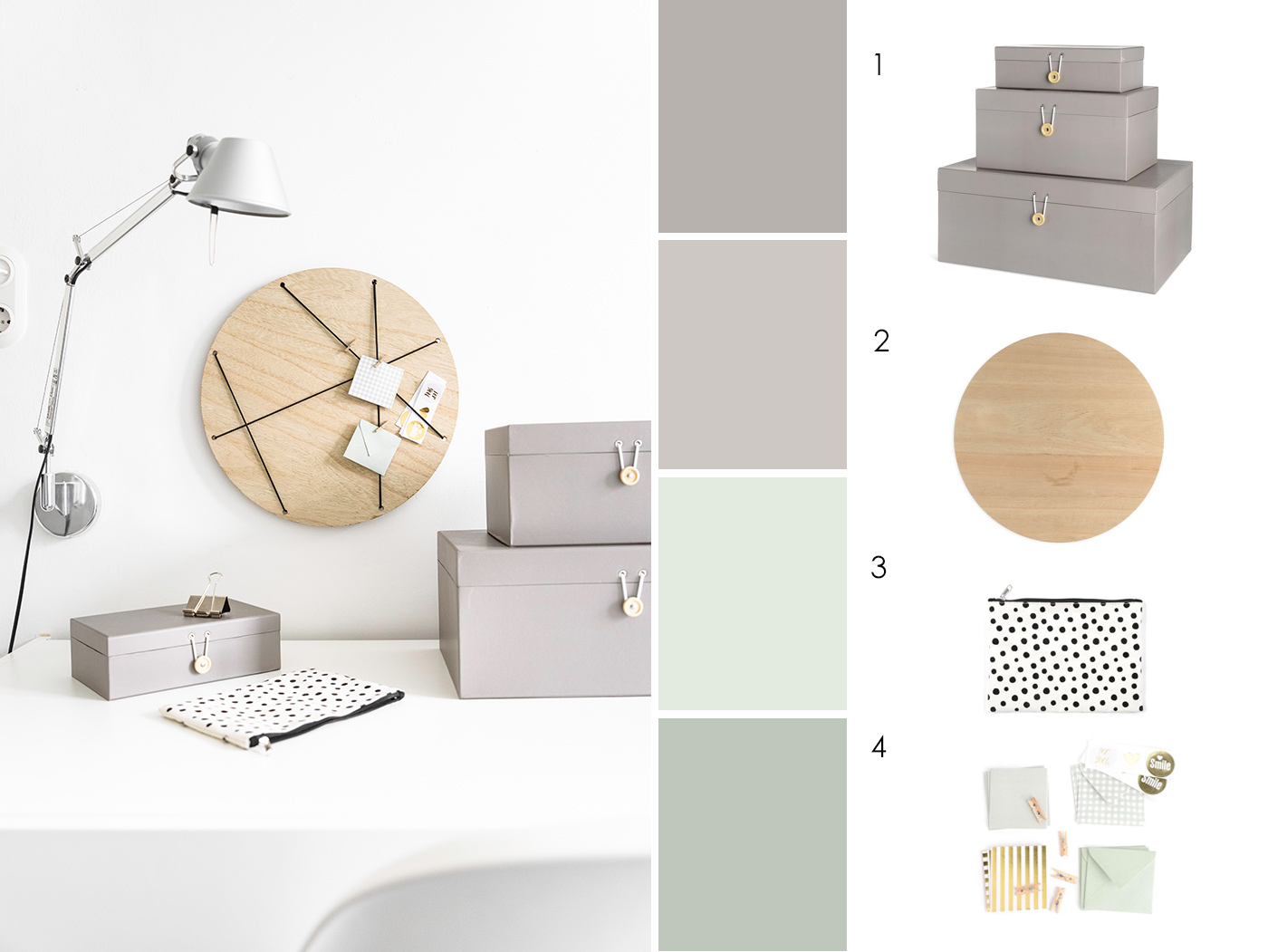 Es wird Zeit, die guten Vorsätze für das neue Jahr in die Tat umzusetzen. Ein Vorsatz lautet: Ordnung halten! Das Homeoffice macht den Anfang und wird nicht nur aufgeräumt, sondern bekommt ein kleines Make-Over, ganz nach dem Motto: Pimp my Desk. Eine neue DIY-Pinnwand zieht ein und schöne Schachteln mit Knopfverschluss helfen beim Ordnung halten. Sie beherbergen so manche Kleinigkeit, die am Schreibtisch gebraucht wird.