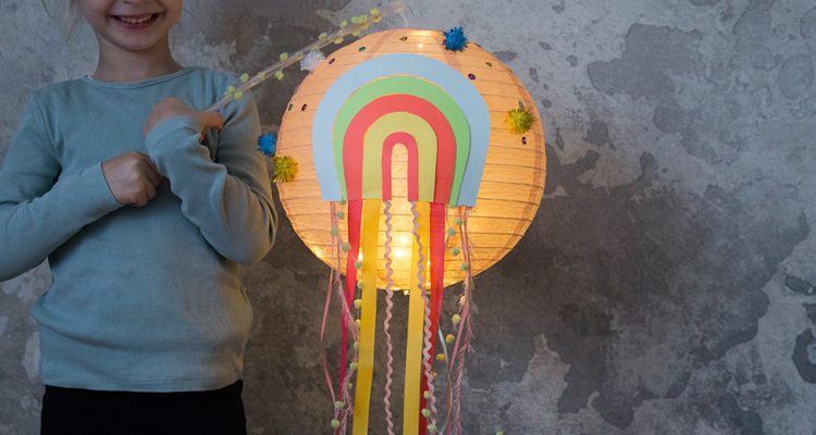 Die fertige DIY Regenbogenlaterne zaubert den Kindern auf jeden Fall ein Lächeln ins Gesicht und wird bei jedem St.-Martins-Umzug auffallen. Dazu ist sie wirklich so einfach und schnell zu basteln, dass dies auch noch in letzter Minute möglich ist. Schön ist auch, dass man die Laterne nach dem St.-Martinsumzug als Lampe im Kinderzimmer weiter nutzen kann. Hierfür einfach eine Lampenfassung in den Lampion hängen, fertig.