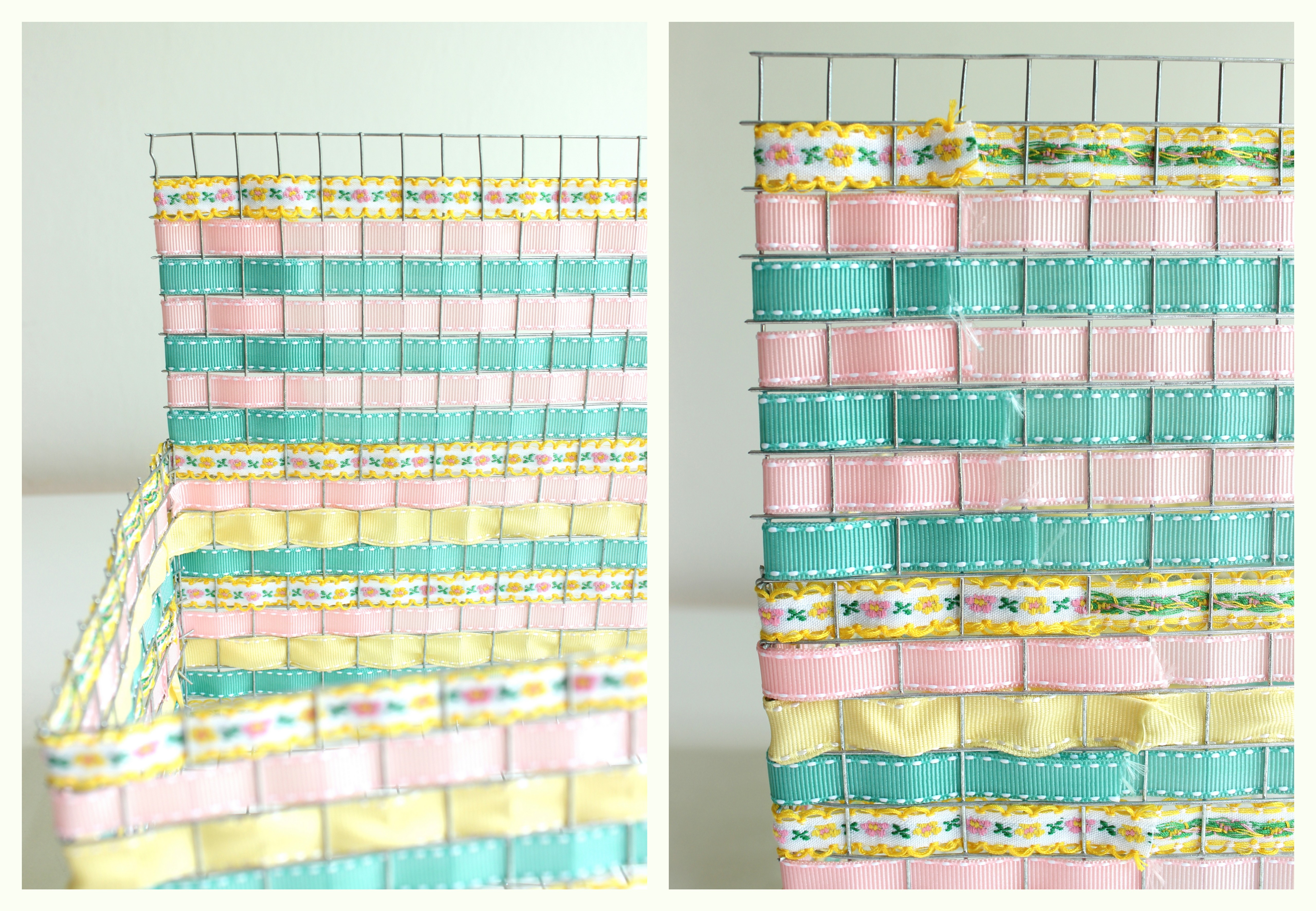 Tipp: Ihr könnt auch, falls Ihr alle Seiten gleich hoch lasst, daraus einen Korb oder ein Tablett machen. Es funktioniert auch toll, den Korb – anstelle mit Bändern zu arbeiten – mit farbigem Lackspray an zu sprühen, oder mit Klarlack um ihn resistent zu machen.