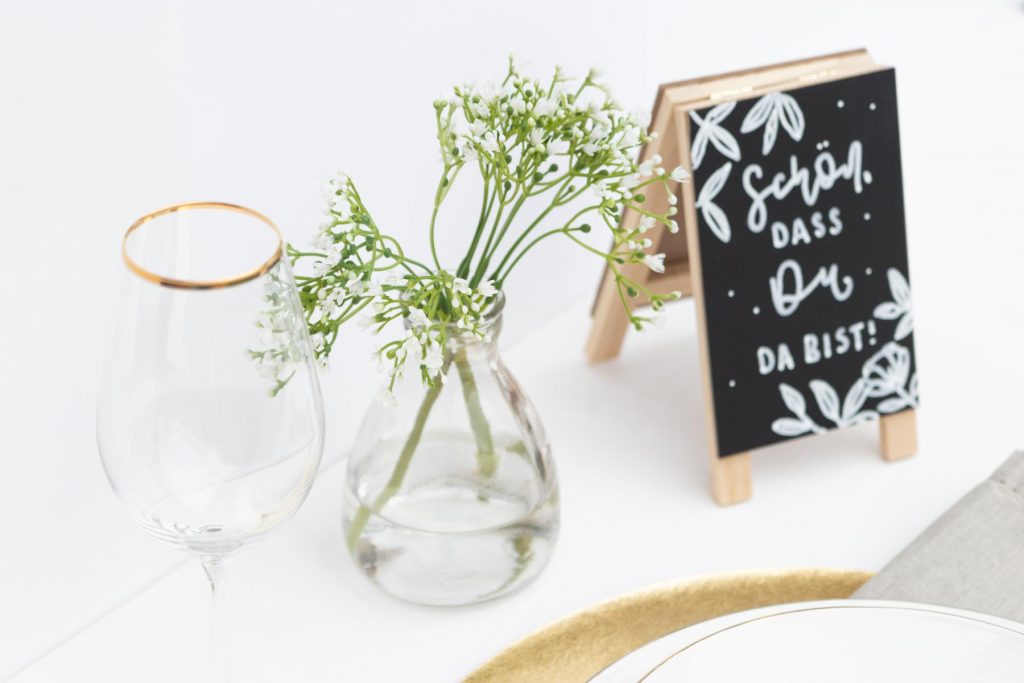 So langsam blühen die ersten Blumen und es wird Frühling. Das bedeutet auch, dass die Hochzeitssaison wieder losgeht! Natürlich steht die Frage der Dekoration bei allen Paaren im Raum, denn schließlich möchte jeder eine tolle Hochzeit erleben und feiern. Selbstgemachte Dekoelemente verleihen einen persönlichen Charakter und heben sich von eurer Tischdeko ab. Wie wäre es, wenn wir unsere Hand Lettering Skills anwenden und ganz besondere Tischkarten zaubern? Die Tischkarten sind bei Hochzeiten nützlich und zugleich auch spannend für die Gäste – neben wem sitze ich? Wer wird mein Tischnachbar für den Abend sein? Wir überraschen unsere Gäste mit liebevoll gestalteten Namensgläsern, die zugleich auch ein tolles Andenken an einen unvergesslichen Tag sind.
