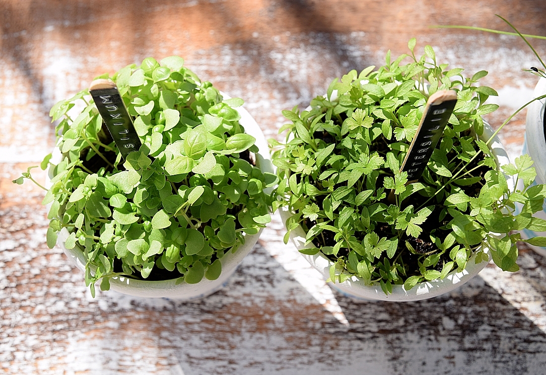 7) Nun solltet ihr die Kräutertöpfe an eine Stelle mit viel Licht stellen – am besten an ein südlich ausgerichtetes Fenster.