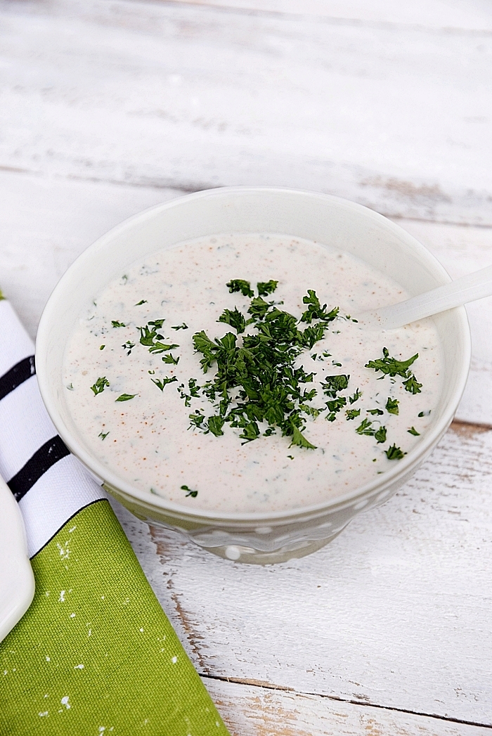 Aus frischen Kräutern lassen sich auch wunderbare Brotaufstriche und Dips zaubern wie zum Beispiel dieser Sauerrahm-Dip. Einfach einen Becher Sauerrahm mit Salz und Pfeffer abschmecken, ein paar Tropfen Olivenöl und Zitronensaft hinzufügen und frische, fein gehackte Kräuter eurer Wahl. So ein Sauerrahm-Dip schmeckt auch vorzüglich zu heißen Ofenkartoffeln. Damit ich meine eigenen Kräuter auch im Winter genießen kann, bereite ich jedes Jahr einige Gläser Kräutersalz zu.