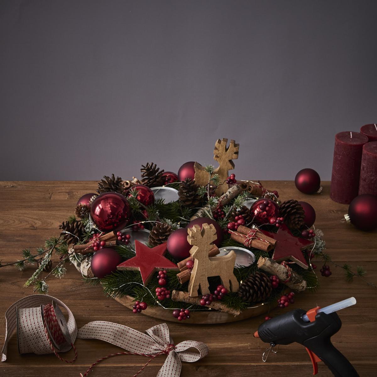 Zum schönsten Fest des Jahres nehmen wir euch mit zu verschiedenen Weihnachts-Hotspots und zeigen euch zu jeder unserer fünf ausgewählten Trend-Städte passende Weihnachtsinspirationen. Nächster Ziel: Kitzbühel! Diese Weihnachtswelt verbindet traditionelle Elemente mit modernen Akzenten. Tannenzweigen, Stumpenkerzen, Zimtstangen und Dekorationselementen in Rot- und Goldtönen zeichnen den klassischen Adventskranz aus und machen ihn zu einem beliebten Weihnachtshighlight. Wir zeigen euch, wie ihr eurem Zuhause den traditionellen Kitzbühel-Style verleihen könnt – mit einem klassischen Adventskranz mit einem süßen Holzhirsch!