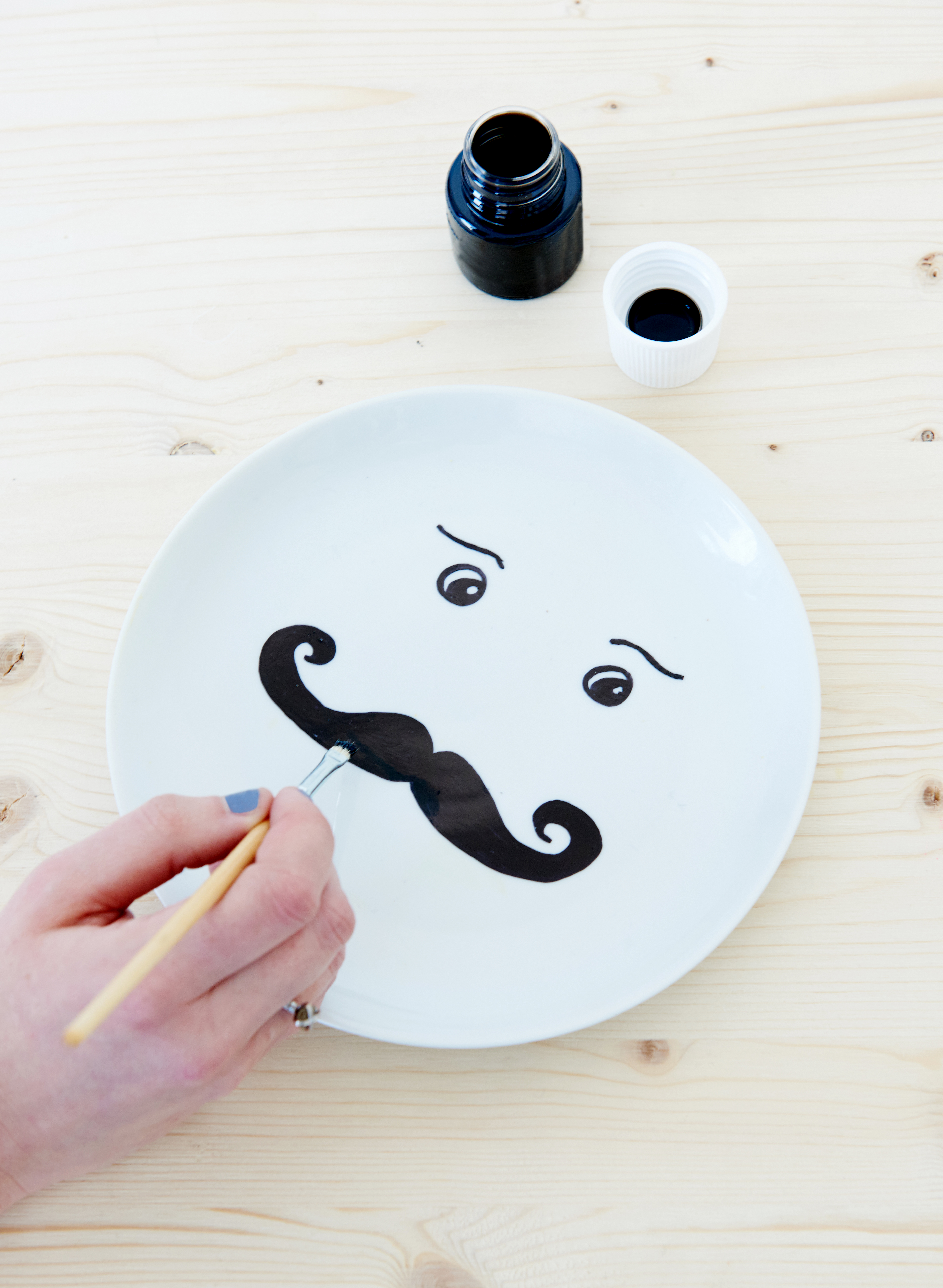 Jetzt muss der Teller erst einmal trocknen. Auf deiner Porzellanmalfarbe findest du Tipps zur Anwendung und der Trocknungszeit.