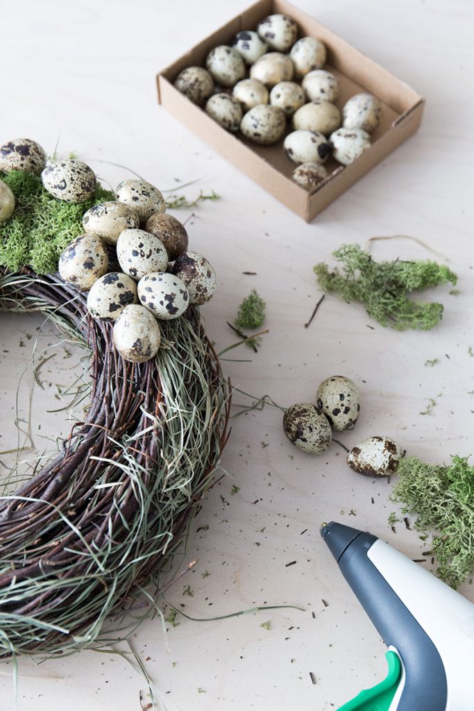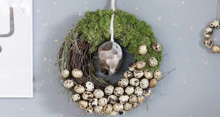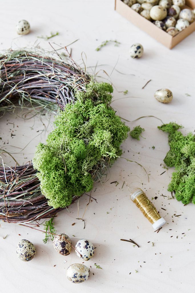DIY natürlicher Osterkranz mit Wachteleiern und Moos