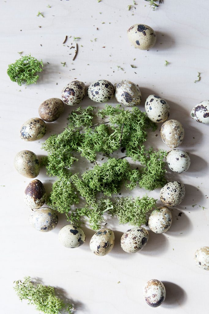 - Wachteleier und Moos für natürlichen Osterkranz