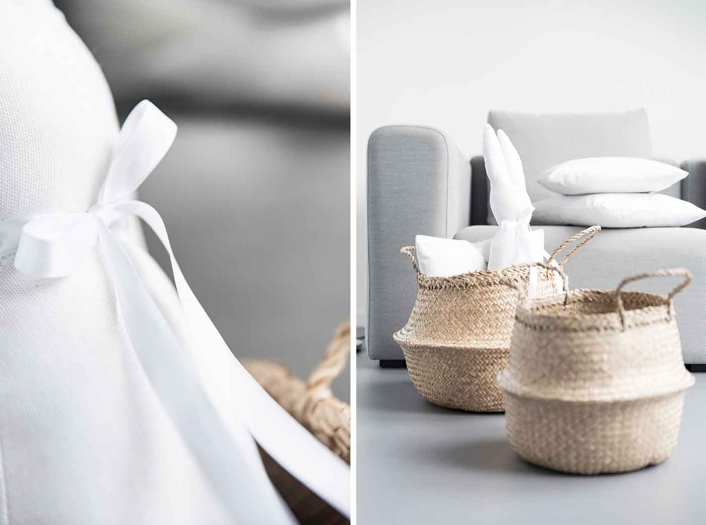 Dieses Jahr habe ich für die Osterdekoration ein Hasenkissen selbst genäht. Das Hasenkissen hat sich mit einer Schleife, die es um den Hals trägt, schon festtagsfein gemacht. Nun sitzt es in einem großen Korb von DEPOT und wartet gemeinsam mit mir auf Ostern.