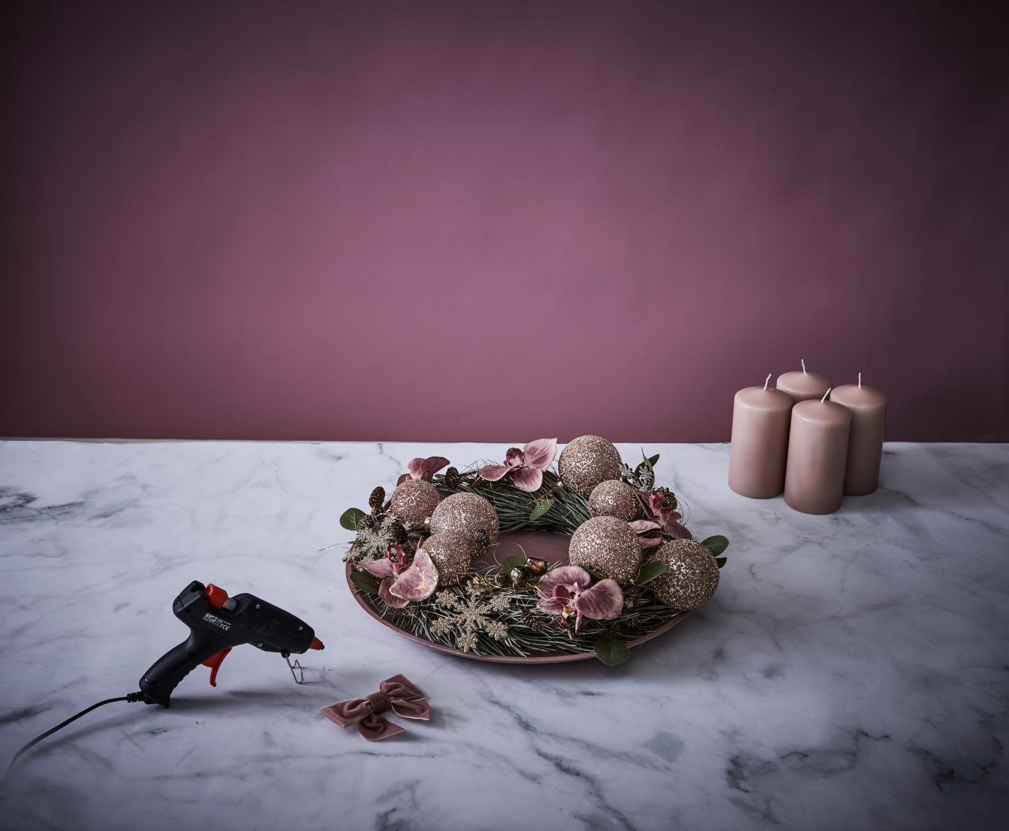 - Unterschiedlich große Kugeln in altrosa verleihen dem Adventskranz einen glamourösen Charme. Sie können ebenso mit der Heißklebepistole an die noch.