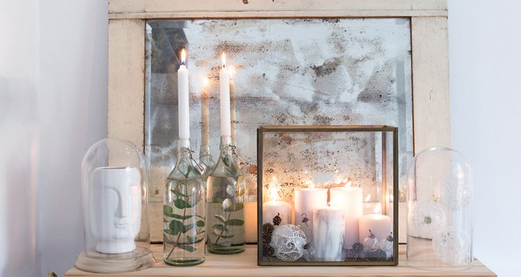 Für noch mehr Kerzenlicht sorgen Glasflaschen, welche als Kerzenhalter umfunktioniert werden. Hierzu eignen sich leere Wein- oder Wasserflaschen, aber auch Glasflaschen mit Schnappverschluss. Die Kerzenenden dazu einfach mit einem Messer etwas anspitzen, bis sie in die Flaschenöffnung passen.