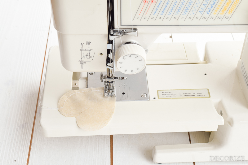 - Die beiden ausgeschnittenen Lagen näht Ihr nun bis auf ein „Einfüll-Loch“ zusammen.