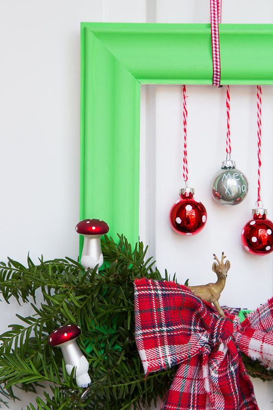 Ich zeige Euch hiermit eine gute Alternative zum Türkranz, die auch schnell gemacht ist. Die Basis bildet ein Bilderrahmen, der dann nach Belieben mit Kugeln, Tannenzweigen, Sternen, Schleifen oder was Euch sonst noch in den Sinn kommt dekoriert werden kann. Der Kreativität sind da nur durch das Thema Grenzen gesetzt. :-)