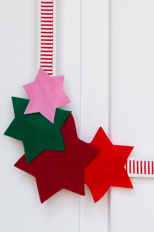 Dann werden die Filz-Sterne nacheinender befestigt.