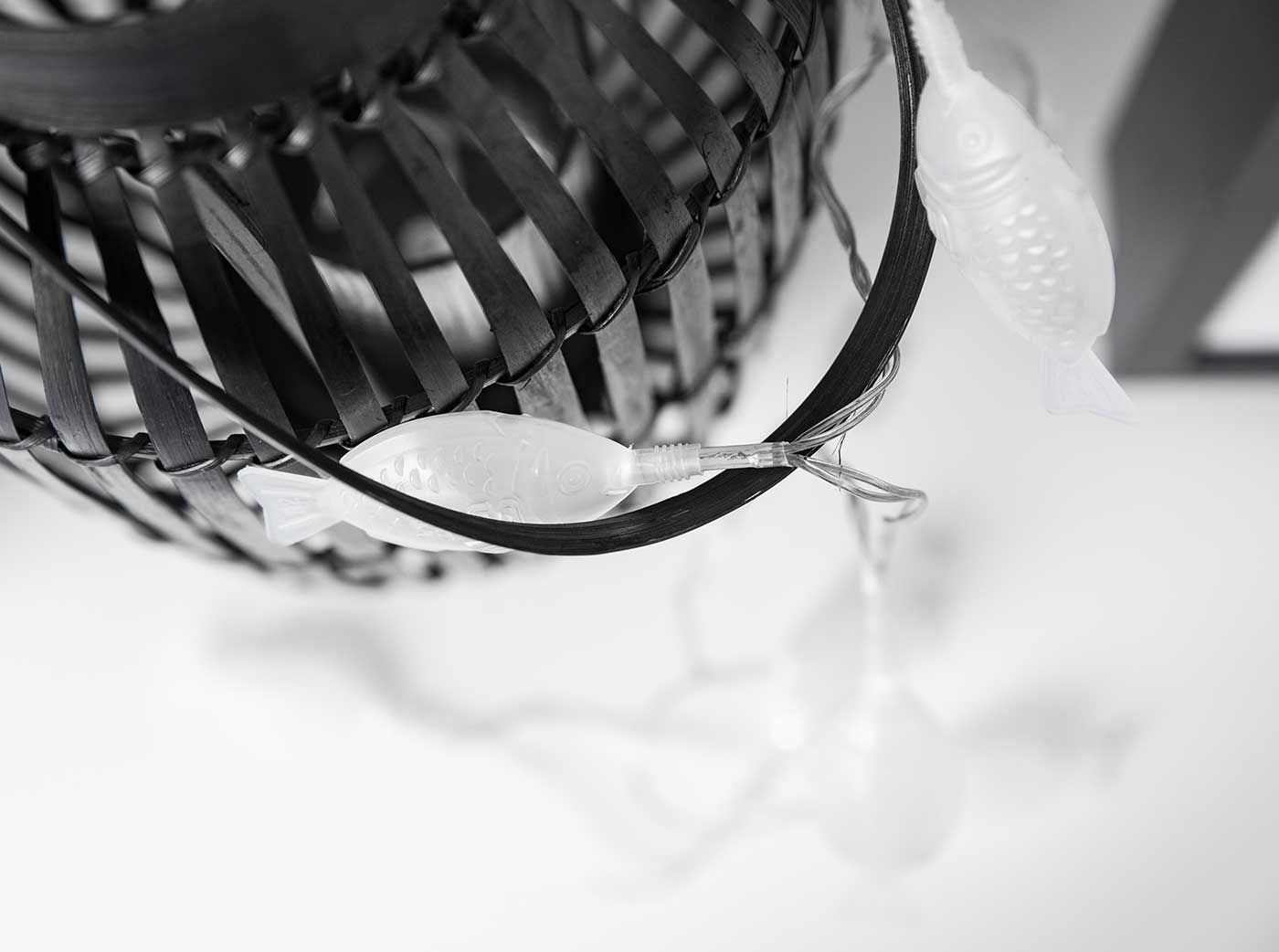 - Wenn die Fische trocken sind, stülpt die Kunststofffische mit der Öffnung über die LED Kerzen der Lichterkette, sie halten recht gut. Sollten sie dennoch verrutschen, weil die LED-Leuchten zu schmal sind, können sie mit Tape fixiert werden.