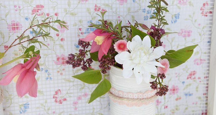 Gewöhnliche Konservendosen lassen sich mit ein wenig Farbe, hübschen Bändern und Spitzenbordüren zu wunderschönen, individuellen Vasen umgestalten. Für meine Dosen habe ich weiße und graue Kreidefarbe verwendet. Verziert habe ich sie mit Spitzenbordüren aus Papier. Aber auch bunte Stoffreste oder dekoratives Papier verwandeln einfache Metalldosen in zauberhafte Vasen.