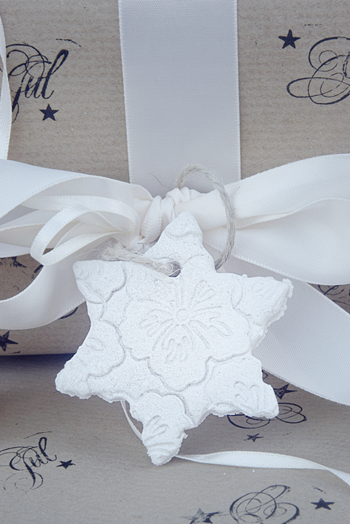 Etwas Selbstgemachtes darf natürlich an keinem liebevoll verpackten Päckchen fehlen. Aus Salzteig lassen sich ganz einfach solche hübschen Geschenkanhänger ausstechen. Ihr benötigt lediglich