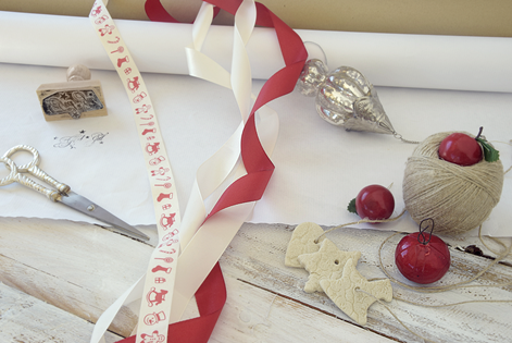 Bänder dürfen natürlich auf keinen Fall fehlen. Bei DEPOT findet ihr Geschenkbänder und Kordeln in großer Auswahl. Doch auch bei den Bändern achte ich darauf, dass sie nicht zu bunt und zu gemustert sind. Für meine Päckchen habe ich weiße und rote Schleifen verwendet. Das weiße Band mit den hübschen roten Weihnachtsmotiven ist für die Kindergeschenke gedacht.