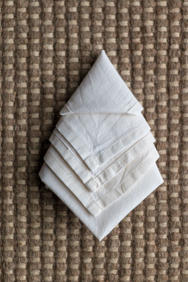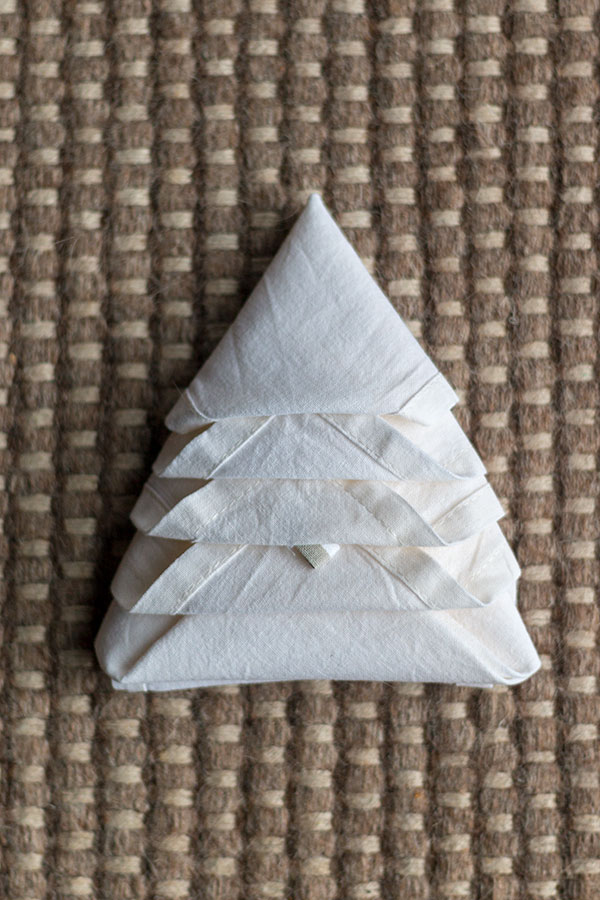 - Serviette umdrehen, sodass die Lagen nach unten zeigen und eine Tannenbaumform erkennbar ist.