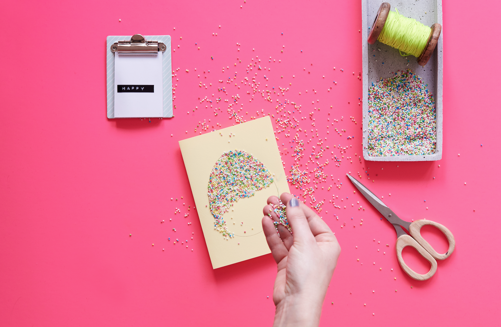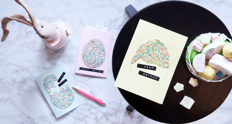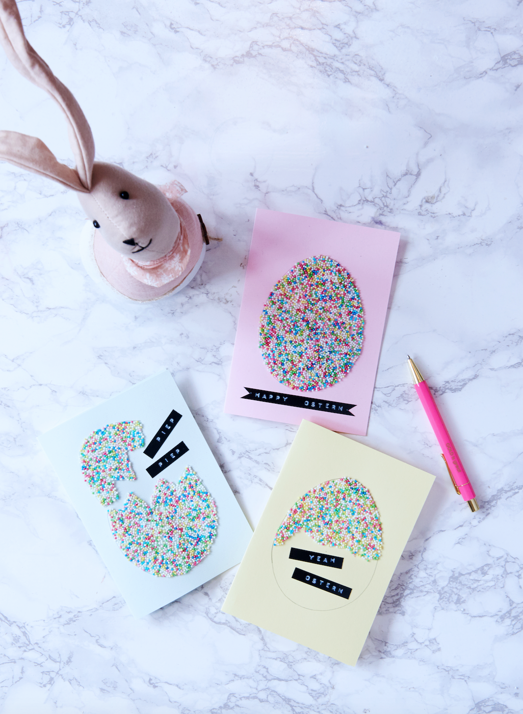 Klopf klopf- der Osterhase steht vor der Tür und natürlich darf da die passende Osterbastel-Idee nicht fehlen! Heute wird es zuckersüß! Denn wir basteln uns aus Pappe, Klebstoff und Zuckerperlen bunte Osterkarten! Oma und Opa machen da sicherlich große Augen, denn wer freut sich nicht über Post vom Osterhasen?! Also nutzt die letzten grauen Wintertage, macht euch auf den Weg ins Bastelgeschäft und zaubert euch bunte „Gute-Laune-Postkarten“!