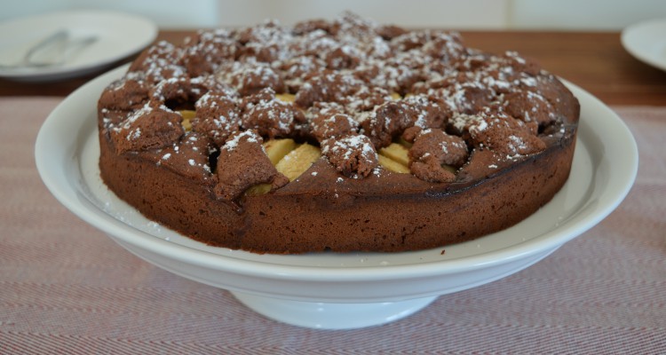 Nach der Backzeit wird der Kuchen einen unglaublich leckeren Duft in der Küche verbreiten…fruchtig, schokoladig und einfach nur suuuper gut! Bevor die Gäste kommen den Apfelkuchen einfach noch mit etwas Puderzucker bestäuben und dann schnell servieren und zugreifen.