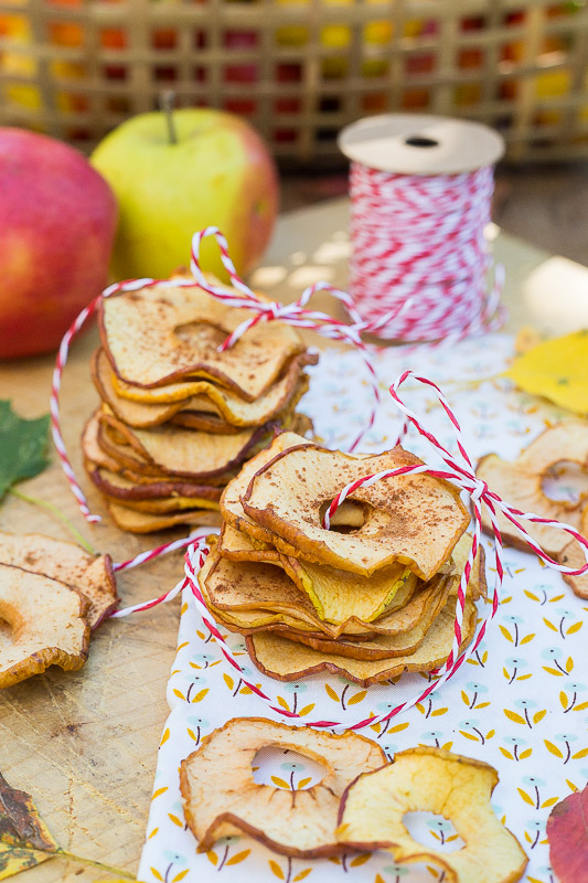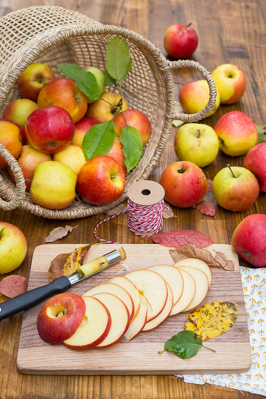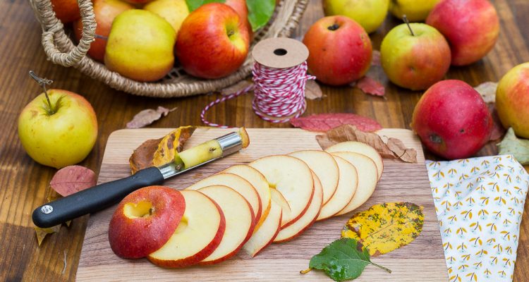 Mit Apfelringe könnt Ihr gesund und kalorienarm naschen! Jetzt, da der Spätsommer die Äpfel färbt und die Blätter langsam beginnen von den Bäumen zu fallen, dauert es nicht mehr lange und der Herbst lässt sich bald blicken. Mit ihm ist die Apfelsaison dann auch schon im vollen Gange. Die Geschmacksvielfalt dieser Früchte ist riesig groß und so lassen sich mit ihnen im Handumdrehen ganz einfach abwechlungsreiche köstliche Snacks für zwischendurch selber machen, ohne Zusätze jeglicher Art und völlig vegan. Die selbst gemachten Apfelringe schmecken zudem noch viel besser als die Gekauften. Das verspreche ich Euch!