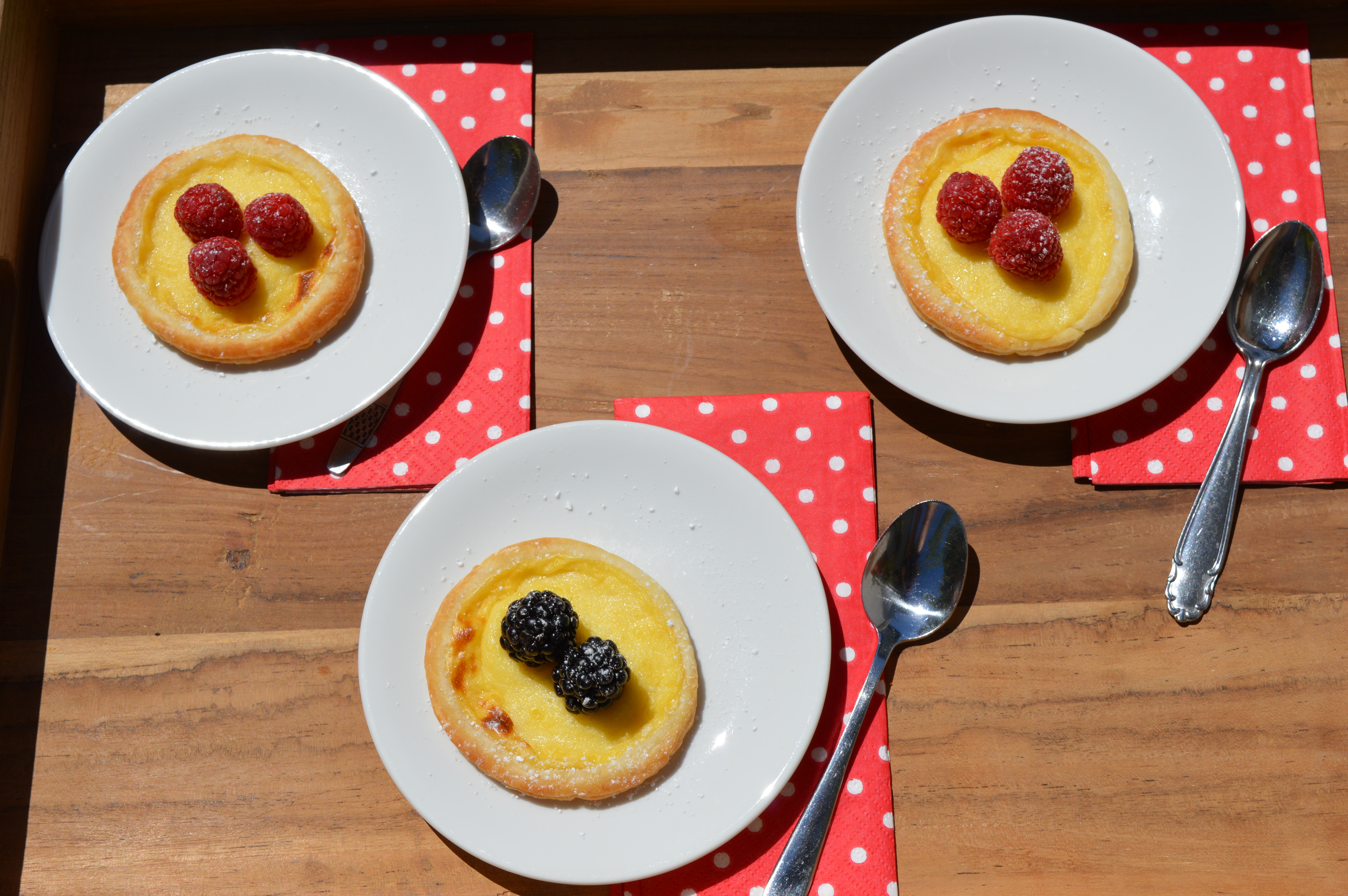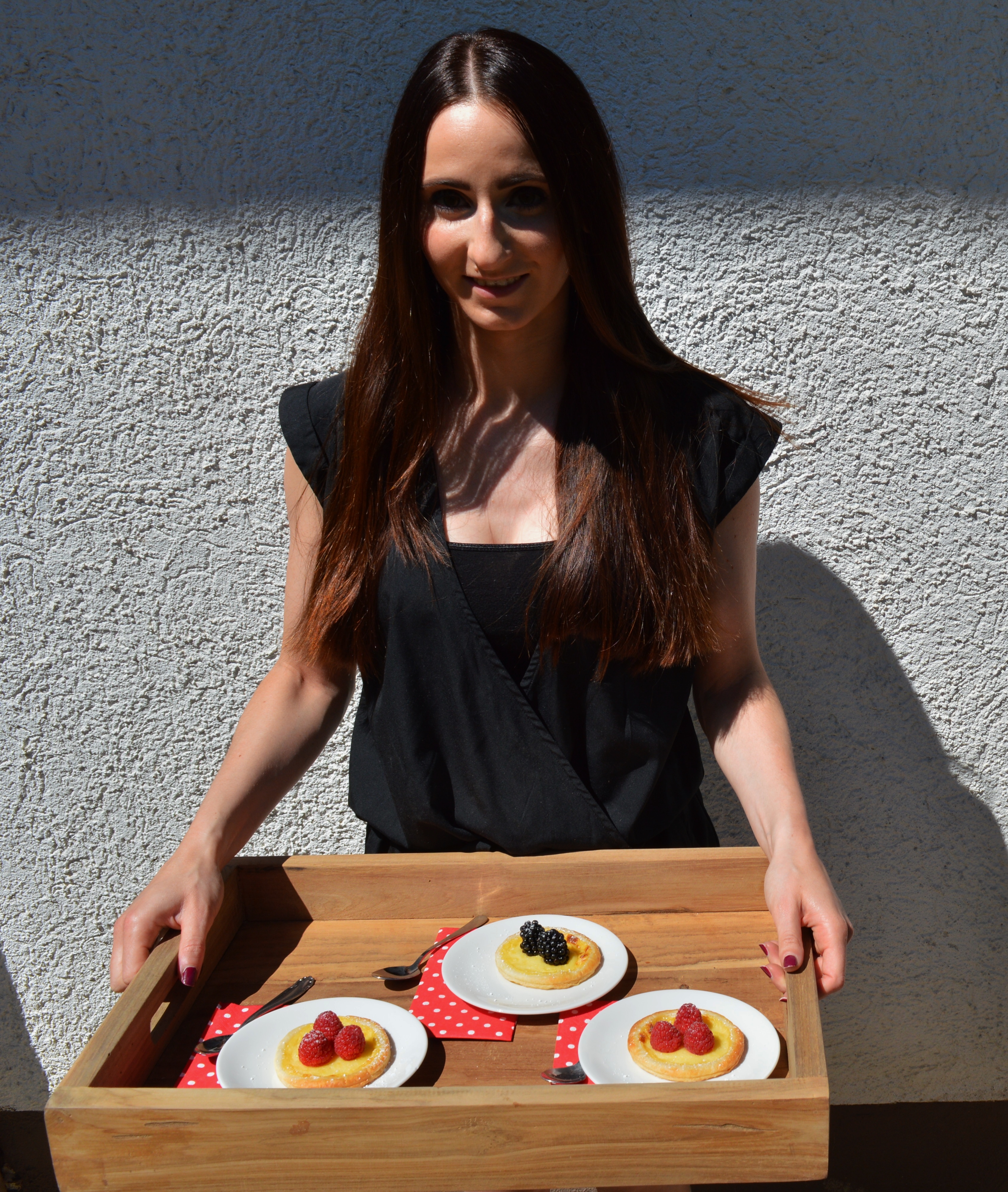 Wow! So schnell habt Ihr leckere Pudding-Teilchen mit frischen Sommer-Beeren gezaubert! Klasse, oder? Die sind einfach und so perfekt um sie den Gästen im Garten, auf der Terrasse oder dem Balkon zu servieren. Praktisch ist dafür auch dieses tolle Tablett von DEPOT (ein ähnliches findet Ihr im DEPOT Online-Shop). Damit lassen sich die süßen Leckerein ganz einfach zu den Gästen bringen. Die roten Pünktchenservietten sind ebenfalls von DEPOT.