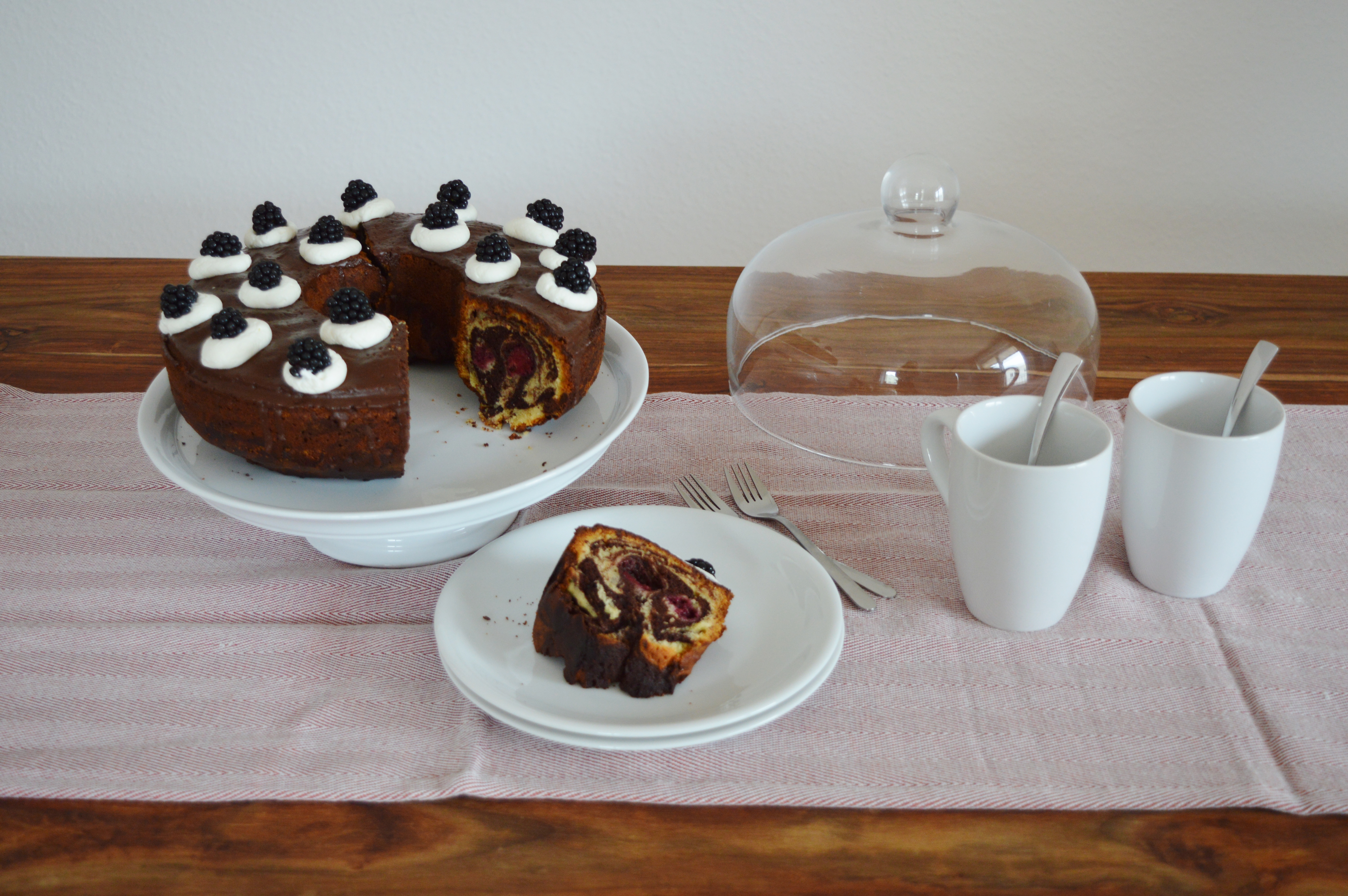Neben leckeren Cupcakes, zauberhaften Törtchen und köstlichen Cremes darf es manchmal auch etwas bodenständiger bei mir Zuhause zugehen. Zum sonntäglichen Kaffeeklatsch oder einfach mal Zwischendurch liebe ich traditionelle Kuchen, ganz nach Hausfrauenart. Marmorkuchen ist so ein Hausfrauenkuchen. Er gelingt mir immer, schmeckt unfassbar gut und lässt sich ohne viele Umstände zubereiten. Und das Beste: Die Zutaten für einen Marmorkuchen habe ich eigentlich immer in der Küche. Etwas aufpeppen kann man den guten Marmarokuchen mit saisonalem Obst wie zum Beispiel kleingeschnittenen Äpfeln, Birnen oder Kirschen. Ich habe mich dieses Mal für Brombeeren entschieden…Das war richtig gut!