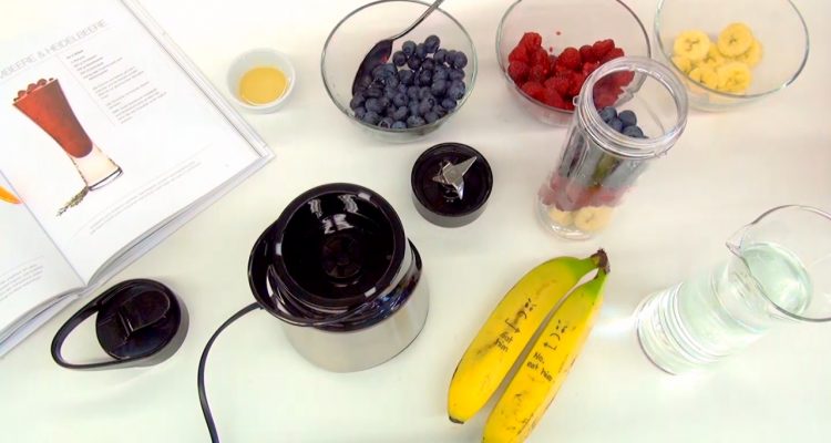 Seht Ihr: Es ist ganz einfach und total schnell umsetzbar. Also kauft Euch leckeres Obst, schmeißt den Mixer an und im Handumdrehen habt Ihr eine Vitamin-Bombe gezaubert. Übrigens – Ihr könnt die Flasche einfach abnehmen, zudrehen und Euren Smoothie auch unterwegs verzehren.