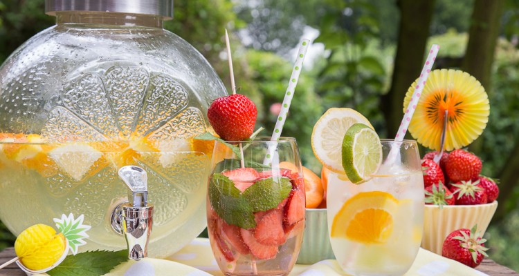 Dann gebt Ihr Zitronen- und Orangenscheiben dazu. Nun könnt Ihr ganz nach Eurem Geschmack Gurkenscheiben, Erdbeeren, Nektarinen und vieles andere dazu tun. Für den letzten Pfiff, gibt noch ein paar Minzblätter oder Zitronenmelisse dazu. Das Ganze lasst Ihr für ein paar Stunden ziehen. Vor dem Verzehr Eiswürfel hineingeben und schon habt ihr die perfekte Sommererfrischung.